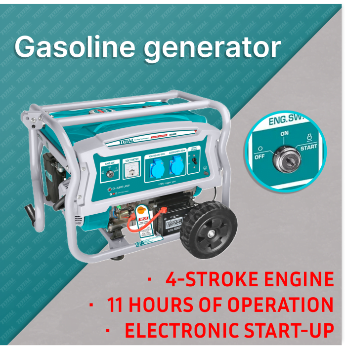 Benzinüzemű generátor TOTAL TP135006E – kiváló megoldás az önálló és megbízható elektromos energiaszolgáltatásra az alapellátás kiesésekor.