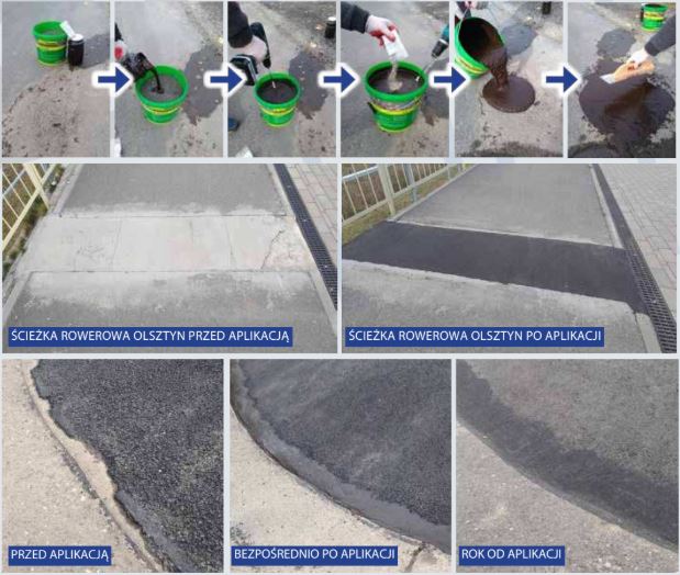 Ez az oldószermentes, hidegen felhordható javítóhabarcs alkalmas kisebb útjavításokra, kisebb lyukak kitöltésére, egyenetlenségek, mélyedések vagy nyomvályúk eltávolítására. Minden forgalmi kategóriához alkalmas.